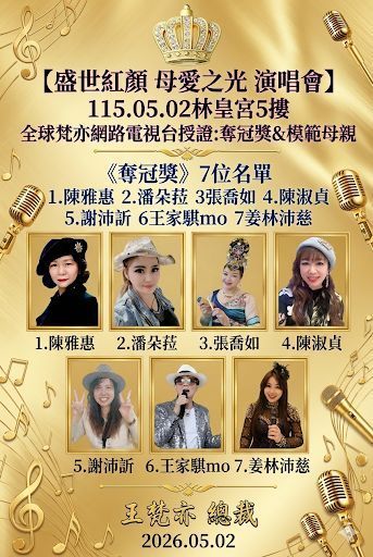 《七年深耕打造新住民女性自信舞台》「盛世紅顏・母愛之光」演唱會5月2日高雄登場 2026/04/18 - 王梵亦報導 - 【記者王梵亦/高雄報導】隨著五月溫馨母親節腳步將近,由高雄市新住民娘家關懷協會主辦的「盛世紅顏・母愛之光」演唱會,將於5月2日(星期六)下午5時,在高雄林皇宮五...