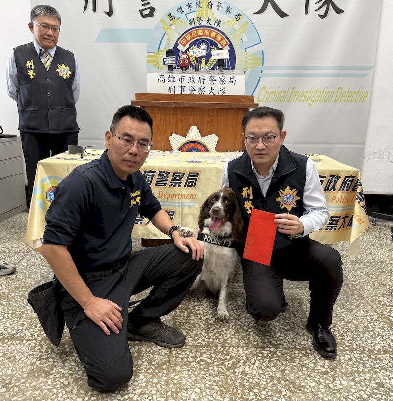 次二日專案小組向高雄地方檢察署借提陳嫌進行挖掘毒品,經大隊長鄢志豪為達成挖掘之效率及精準,指示特向保三總隊申請支援緝毒犬,以增加挖掘之效率,隨即前往該公園執行挖掘,由綽號「可樂」緝毒犬上陣,緝毒犬如同雷達精準定位一般,嗅到毒品味道隨即趴下並做挖掘狀,一開挖便發現毒品,隨即重複該模式,感覺到緝毒犬也充滿著成就感地賣力聞嗅,讓辦案人員十分地激賞並歡呼,現場氣氛如同中樂透一般,共計挖出多量大麻菸彈。