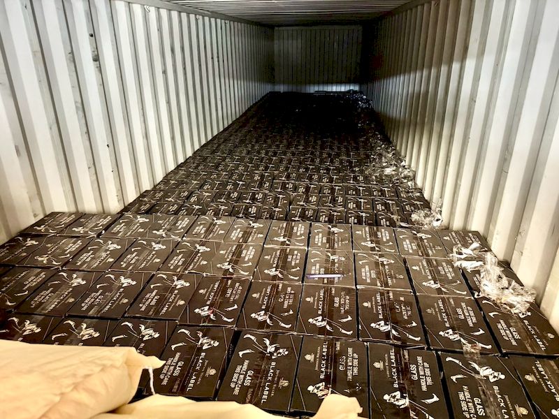 高雄關進一步說明,查緝關員於風險分析時發現卸存於S3碼頭2只欲轉口運往香港之40呎貨櫃甚為可疑,遂鎖定開櫃檢視,結果發現櫃門前兩排處以塑膠粒等貨物掩飾,其後皆為未申報的約翰走路威士忌及野格利口酒,經核與艙單及運送契約所載貨名不符,涉嫌違反海關緝私條例及菸酒管理法等規定,已依法查扣。