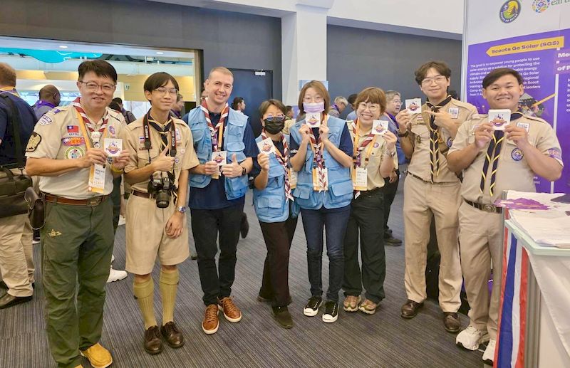 創客與環保設計:高雄英明國中集結「科技 × 童軍 × X永續」的創意 、設計出「專屬胸章」、「智慧繩結」、「隨身氣體偵測裝置」及「廢電池回充行動電源」四大互動亮點,此外,「校服翻轉計畫」響應童軍重視環境永續精神,展示如何為孩子打造高機能環保校服,並邀請領袖們親手DIY以大會Logo為主的專屬筆袋。