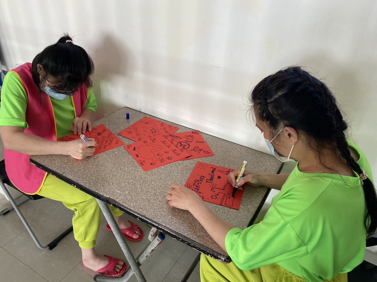 ▲圖:受收容人開心製作春聯(移民署南區事務大隊高雄收容所提供)