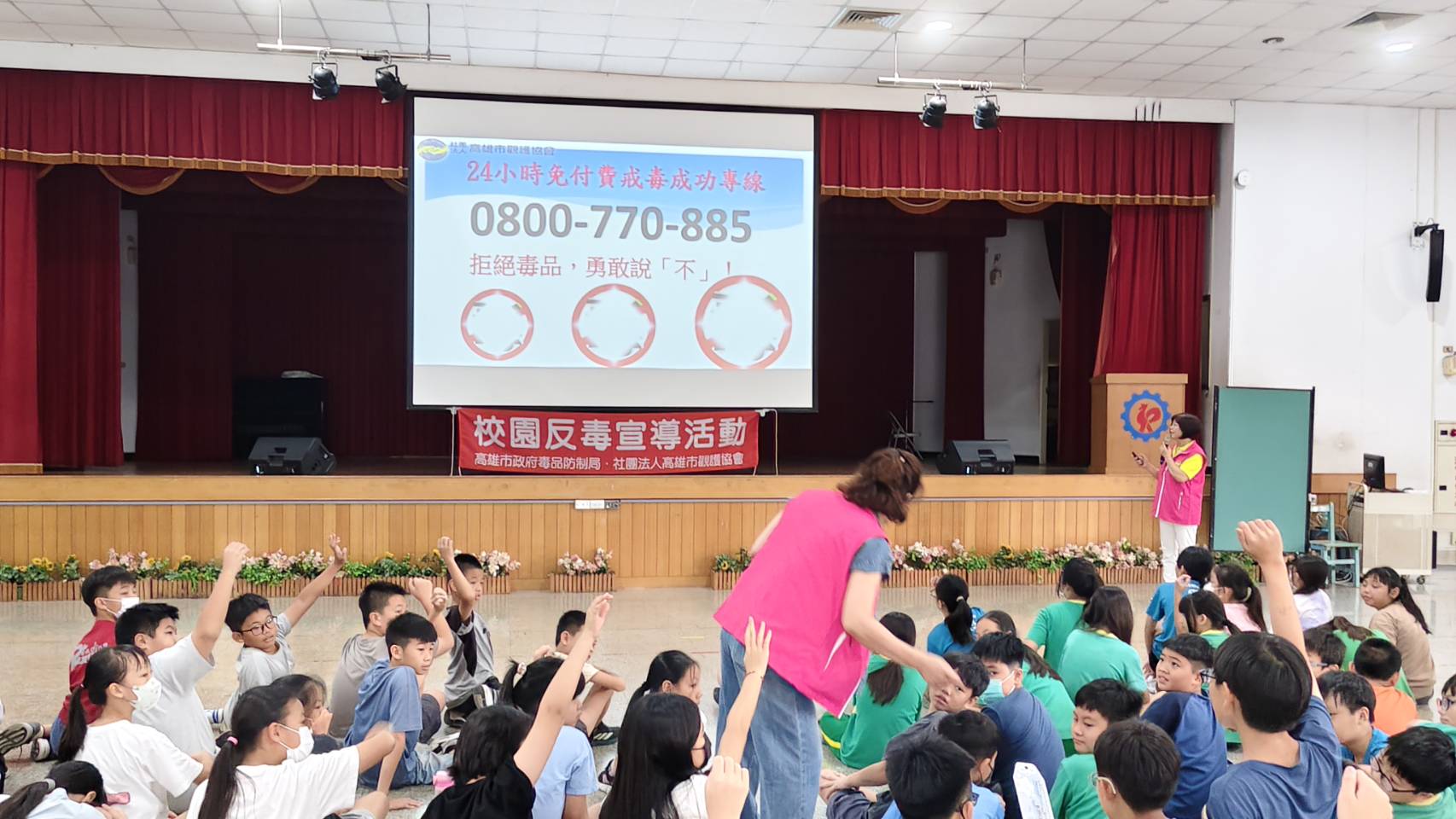 高雄市觀護協會郭家妃理事長也貼心致贈每位學生一支「反毒拉紙筆」,隨筆附有「防毒3不3要」及24小時免付費毒防諮詢專線(0800-770885),讓孩子們隨時能提醒自己與朋友遠離毒害、守護青春年華,共同走出亮麗人生。