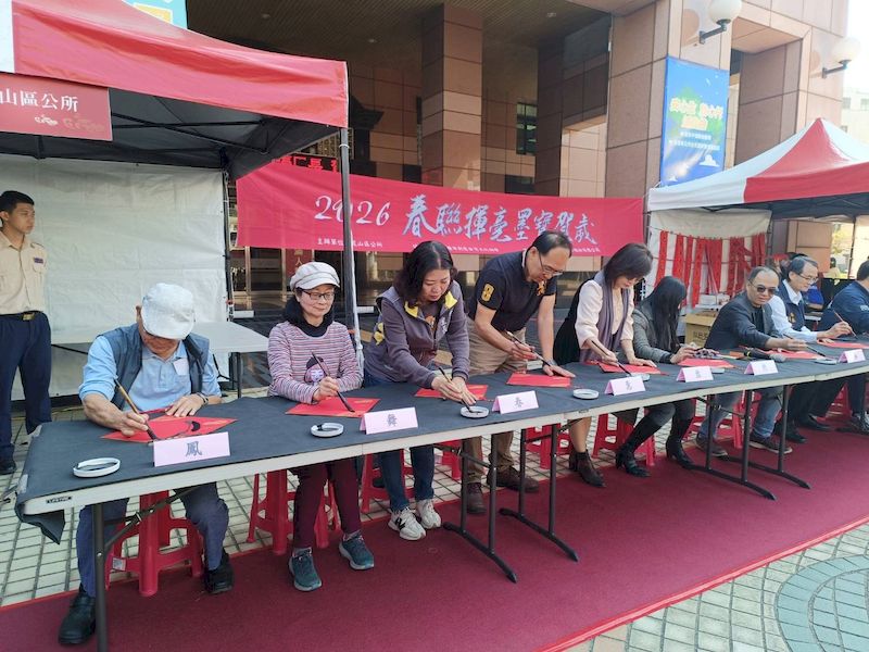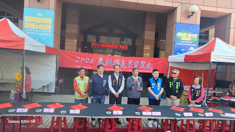 鳳山區長吳茂樹表示,透過春聯揮毫活動延續傳統文化精神,同時凝聚在地社區能量,讓民眾在書法藝術氛圍中迎接新年,為年節增添喜氣與祝福。活動開場特別邀請14位貴賓共同參與「2026 春聯揮毫墨寶賀歲吉祥秀」,並揮毫寫下「鳳舞春意盎然盛、馬奔盛世昌隆興」上下聯,象徵鳳山瑞氣盈城、馬年吉祥順遂。