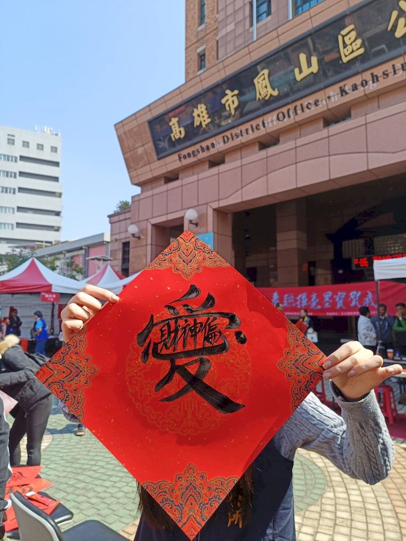 【記者李巧珍/高雄報導】高雄市鳳山區公所於2月12日在區公所廣場舉辦「2026 春聯揮毫墨寶賀歲」活動,結合書法藝術展演與民眾互動體驗,現場墨香四溢,洋溢溫馨熱鬧的新春氣氛,吸引眾多市民攜家帶眷參與,共同迎接農曆新年。