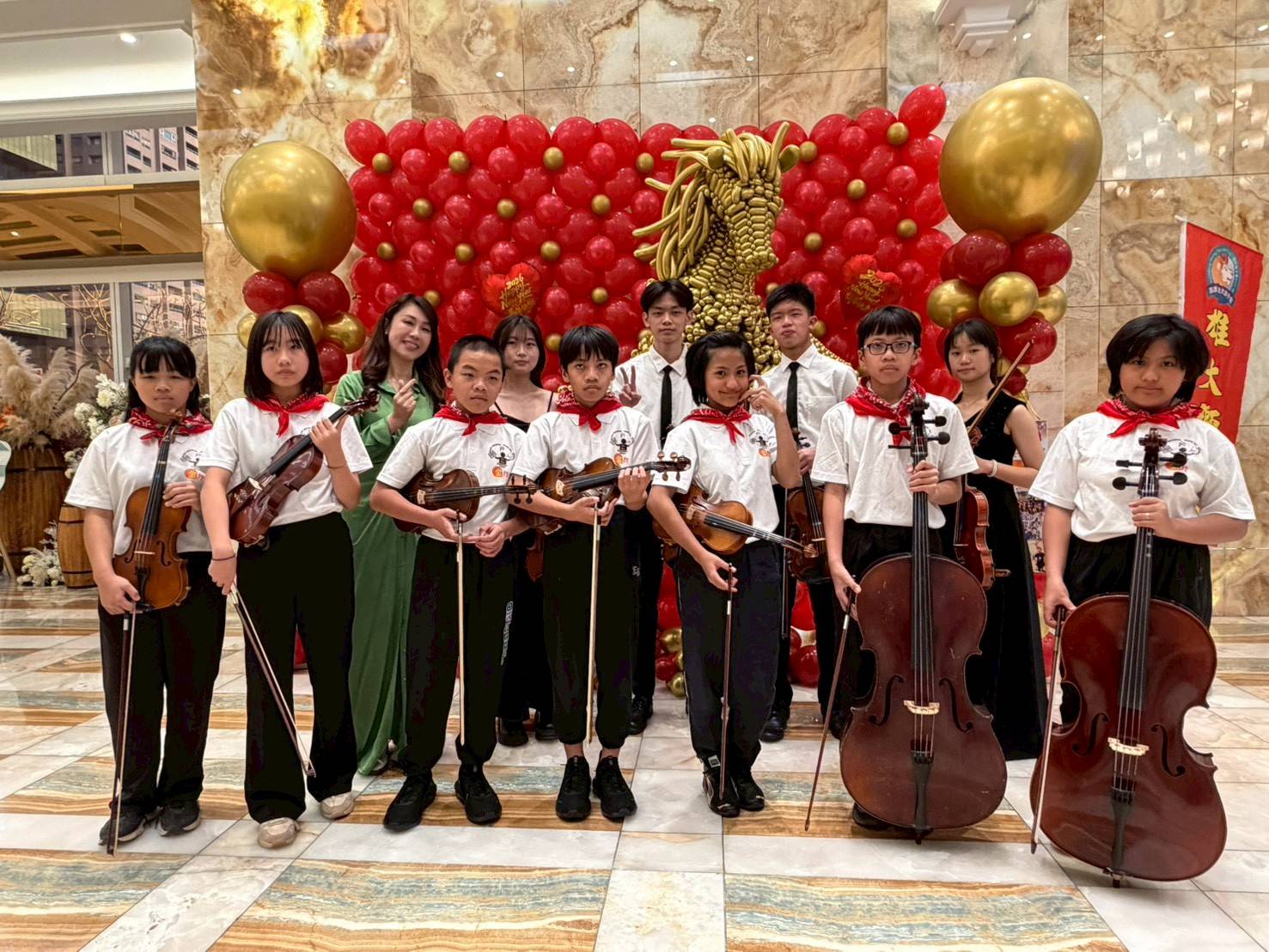 受贈單位「愛分享弦樂團」為感謝獅子會的愛心,特別現場演奏三首動聽樂曲,展現精湛琴藝。在觀眾熱情的安可聲中,樂團加碼演奏經典舞曲《妳是我的花朵》,瞬間點燃現場熱情,台下獅友紛紛起立,隨著音樂節奏與樂團一起熱舞,場面溫馨而熱烈,充分展現了獅子會大家庭的熱情與活力。