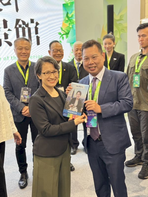 今日展會開幕首日,蕭美琴副總統蒞臨參訪由內政部設置的「內政部淨零願景館」,由內政部次長 董建宏與內政部國土管理署蔡長展署長、國家公園署王成機署長建築研究所王榮進所長陪同導覽,向國際城市代表介紹台灣在淨零建築與建築整合再生能源方面的政策與示範成果。