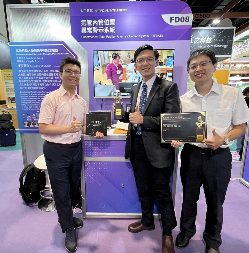 2025未來科技獎由國家科學及技術委員會(國科會)攜手中央研究院、教育部與衛生福利部舉辦,宗旨是表彰具有創新與實用價值的臺灣技術成果,獲獎技術於16日至18日的「2025台灣創新技術博覽會-未來科技館」中公開展示與媒合,並於昨(18)日在臺北世貿一館舉行頒獎典禮。高醫的氣管內管位置異常警示系統也在此亮相,透過展示與交流,吸引醫材業者、投資單位與國際市場的關注與合作。