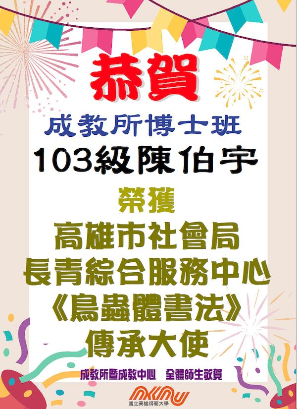 【記者張永漢/高雄報導】為推廣國粹藝術並活化長者學習生活,高雄市政府長青綜合服務中心將於 114 年 12 月開設《鳥蟲體書法》免費課程,由知名書法研究者、傳承大使陳伯宇博士親自授課,無論年齡皆可參加,歡迎有興趣的市民把握機會。