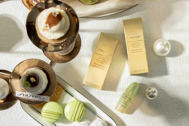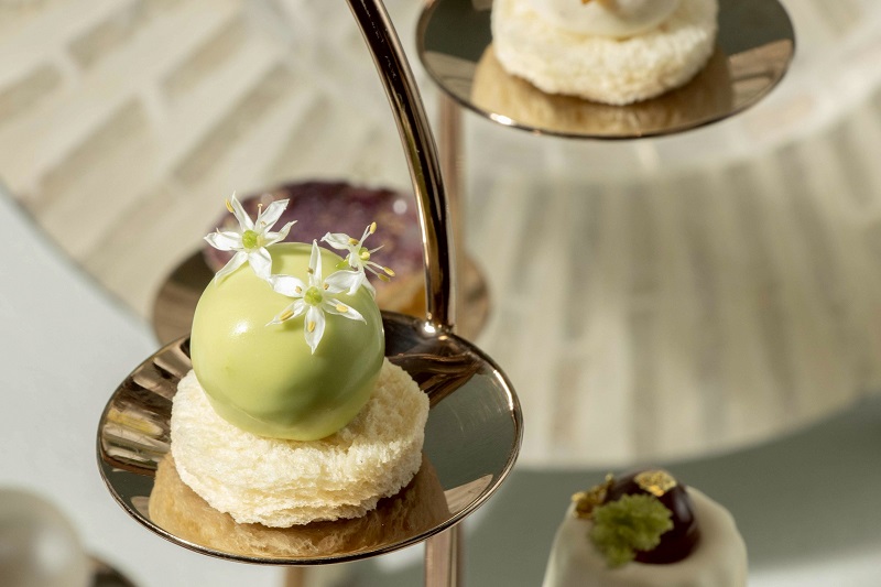 此次聯名合作,主廚以資生堂頂級「極上御藏傳奇系列」的極光綠金色調為靈感,將其故事巧妙轉化為甜點語彙,形塑兼具日式奢韻與靜謐意象的甜點風格。同時以產品主成分櫻花、茉莉與玫瑰香氣為創作主軸,打造精緻且富含儀式感的冬日美味,引領賓客在品味之際,感受 SHISEIDO 所蘊含的健康與美麗能量。