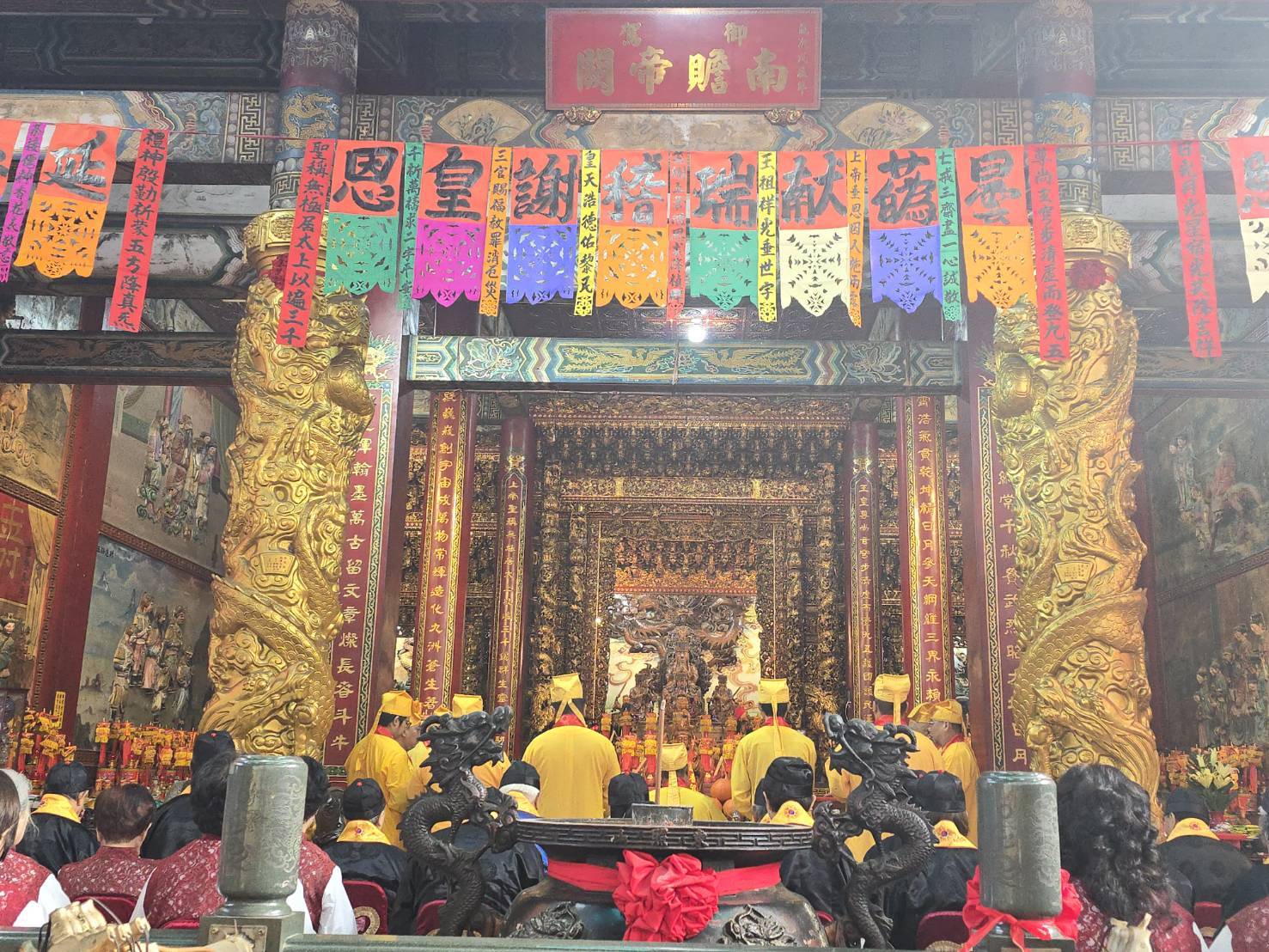 東照山關帝廟指出,本次法會自12月16日至20日依循古制隆重舉行,每日清晨由十位法師率領廟方執事與功德主齊聚雲霄寶殿,焚香誦經,虔誠祈請玉皇大帝、三寶佛、藥師佛、關聖帝君、觀世音菩薩及地藏王菩薩,啟建梁皇寶懺水陸超拔大法會。法音繚繞殿堂,與晨曦交映,場面莊嚴肅穆,法喜充滿。