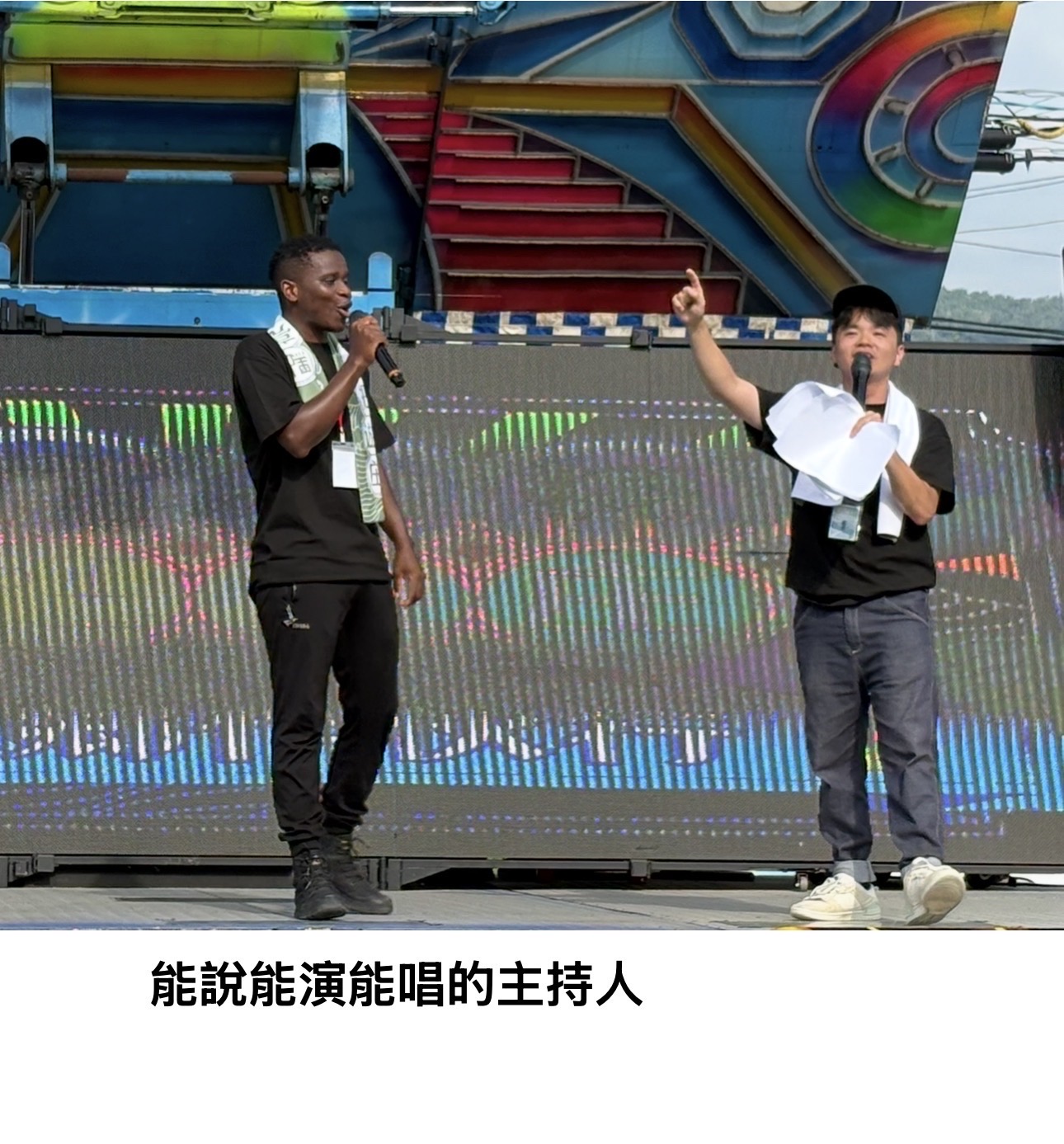 鼓勵在地發展以及融入新血的精神,由搭檔的主持人便可以看得出來。兩位節目主持人一位是在地的青年歌手王晨,另一位則是會說Afrikaans, 國語,台語三聲道自由轉換,綽號「拖把」的南非新住民。兩個人不只能帶動群眾參與,更是能說,能唱,能演。
