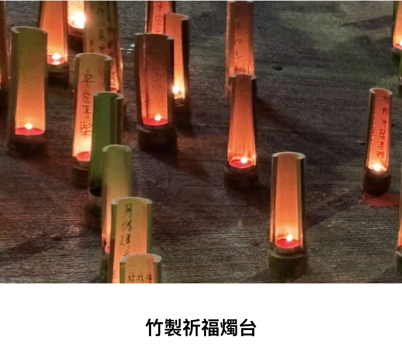 而終點的設置也不馬虎。主辦單位將參加者在報到之後寫下心願祝福的竹做燭台拼成了台灣地圖。到達終點的賓客不只受到現場演出歡樂氣氛的鼓舞,也因為看到已經點亮的自己許願的燭台紛紛擠上前去拍照。
