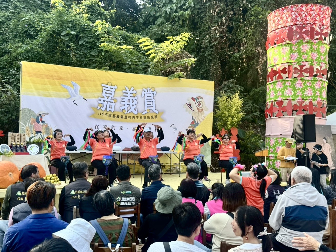 成果展期間,水上鄉成功社群帶來開場的空靈鼓表演,象徵農村整年所積累的生命力。活動設計了七大展區,涵蓋農村多樣能量,如「嘉義農再時光區」、「農村楷模區」、「農村生態與環境區」及「農村新風味區」,同時設有農產品市集與手作體驗活動,包括金獅社群的「竹編馬DIY」及埤前社群的「玉米紙揮毫DIY」,歡迎大小朋友親自體驗。