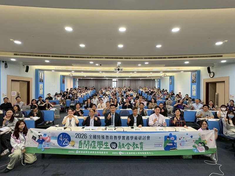 【記者葉璟頤/高雄報導】國立高雄師範大學特殊教育中心115年4月25日(星期六)假行政大樓十樓國際會議廳舉辦「2026全國特殊教育教學實務學術研討會」,以「自閉症學生與融合教育」為主題,深入探討自閉症學生的支持與融合教育的發展,強調跨領域合作與實務分享,吸引國內外特殊教育領域專家學者與實務工作者共計240餘人參會。