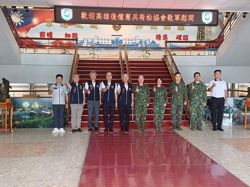 本次慰問行動由高雄市後備憲兵荷松協會理事長蔡泰郎率隊,榮譽理事長郭進國、謝慶堂等人共同參與,高雄市軍人服務站站長吳俊一亦陪同出席。