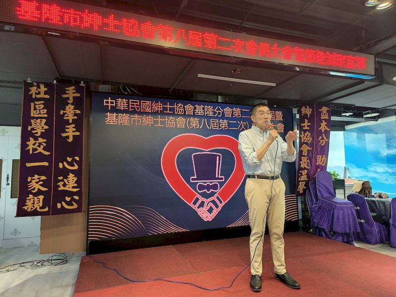 大會貴賓雲集,基隆市長謝國樑親臨致詞,肯定紳士協會長期推動終身學習、志願服務與善盡社會責任,並分享近年對基隆公共建設、社會政策及市政施政成果。基隆市議長童子瑋亦贈送花架祝賀,展現對協會的支持;中華民國紳士協會總會理事長馬幼禎蒞會指導,市議員韓世昱、秦鉦到場祝賀,與會員互動熱絡,為活動增添光彩。