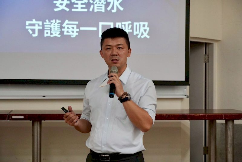 課程重點針對潛水減壓症的成因、症狀辨識、緊急處置與後送,並比較自由潛水與水肺潛水對人體機能的差異。林冠宏醫師強調,減壓症有時延遲發作,潛水後數小時才可能出現關節痛、皮膚大理石斑、視覺或平衡障礙、呼吸困難等症狀,甚至類似中風,若延誤就醫,後果嚴重。他提醒潛水員,一旦出現疑似症狀,務必盡快送往設有「潛水急診」的醫療院所。