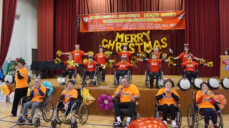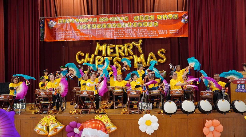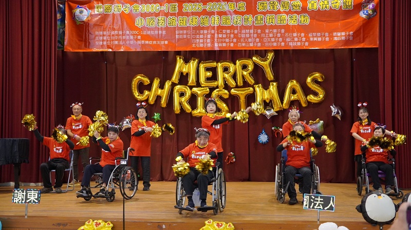 【記者席震國/高雄報導】聖誕佳節前夕,小腦萎縮症病友協會為來自高雄、台南、台中近60位小腦萎縮症病友舉辦了一場特別的聖誕歡聚,與會病友們展現了他們平日在協會透過定期「復健娛樂化」訓練出的舞台才藝―太鼓、啦啦隊、卡祖笛,長期支持小腦萎縮症病友協會的臺中東美獅子會獅友們也透過走秀,陪同病友代表走紅毯出場,並號召友會共同捐款及物資支持協會,這一場於台中特殊學校進行,看似充滿歡樂氛圍的聖誕趴,背後除了有許多小腦萎縮症病友和家庭與協會一起面對漫長病程的生活與心境轉折,也蘊含東美獅子會逾20年歷屆獅友們代代相傳對小腦萎縮症病友協會的長期關照。