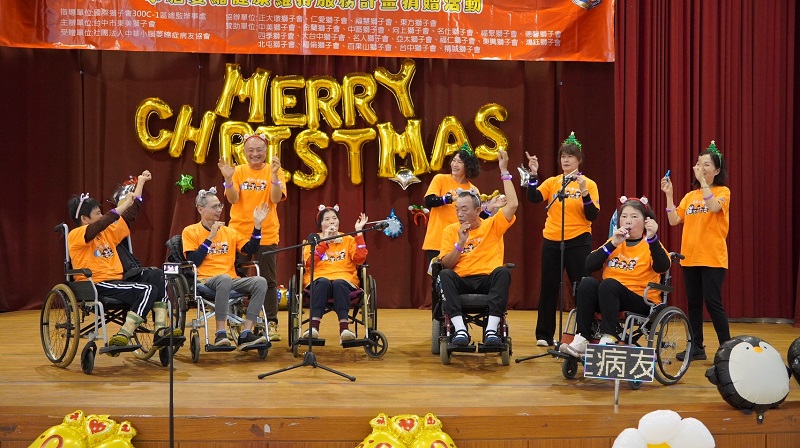 此次於台中特殊教育學校舉辦的中南部病友聖誕趴,提供病友走出家門的誘因,也提醒病友和社會大眾「即使身體生病了,仍有歡笑、慶祝每一天的能力。」對協會長達20餘年支持情誼的臺中東美獅子會獅友們,開場時相伴10位坐輪椅或是步履艱難的病友代表紅毯走秀,每一步前進都充滿善與愛的守護,會中東美獅子會會長洪霈珊和獅子會300-1區林玉彪總監特別代表相關友會及獅友贈送25萬元社福金挹注協會2026年度的復健娛樂化課程相關費用,仁愛獅子會亦共襄盛舉捐贈毛毯物資,提供經濟弱勢的病友家庭寒冬的溫暖。