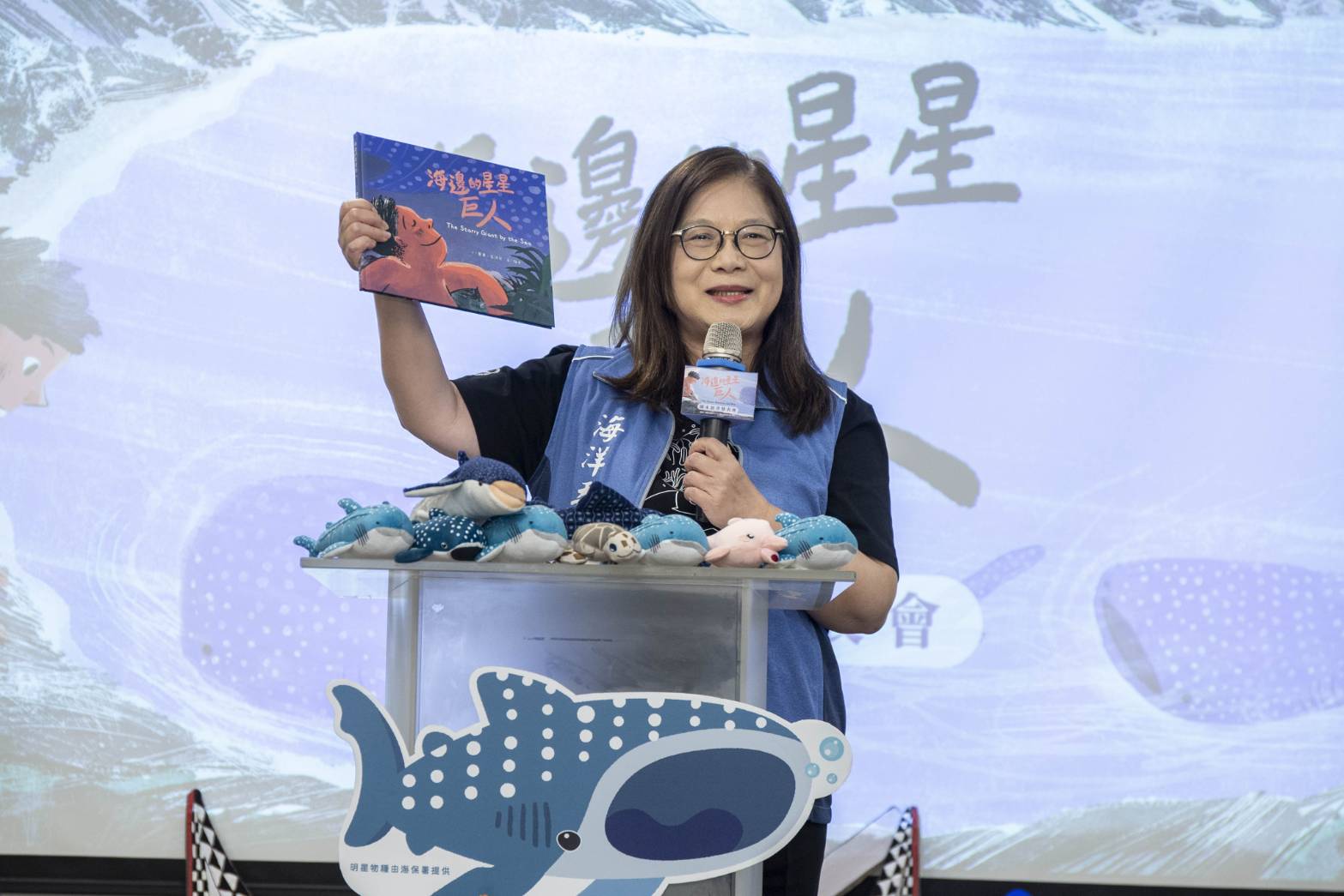 管碧玲進一步分享,本次《海邊的星星巨人》為了讓故事更有想像空間及渲染力,讓孩子們更認識海邊的星星巨人—鯨鯊,特別設計了一幅拉頁,繪出美麗的星空,而海裡的鯨鯊身上的銀白色點點,也像是海中的星空,希望讓孩子們透過閱讀感受海洋的美好。鯨鯊保育不只是生態政策,更是一個關於未來的提問--未來的孩子,是否還能在真實的海洋中,看見這樣壯闊而溫柔的生命?她表示,臺灣四面環海,海洋不只是自然環境,更深深連結著生活、文化與世代記憶。「要讓海洋被真正守護,不單只有法規與制度,更需要從教育扎根,當孩子在故事裡,先對海洋產生情感與敬畏,長大後,守護就會成為一種自然而然的選擇。」