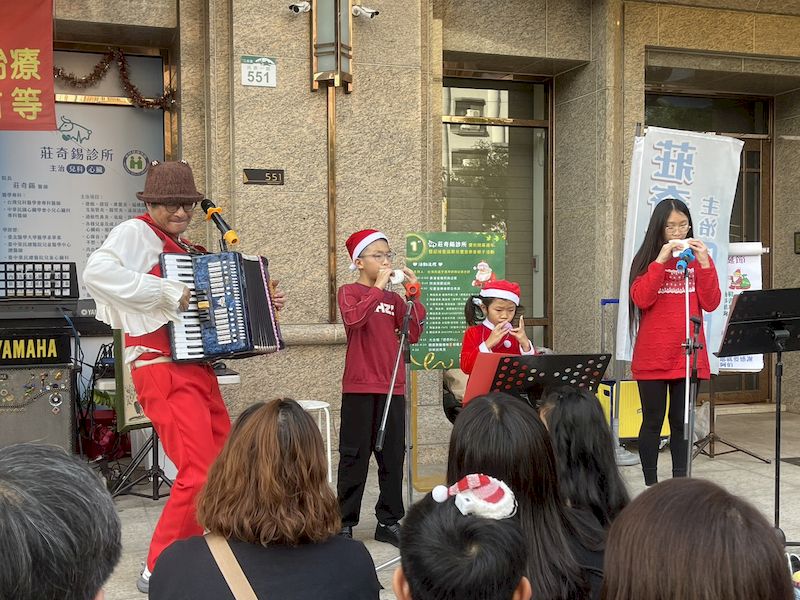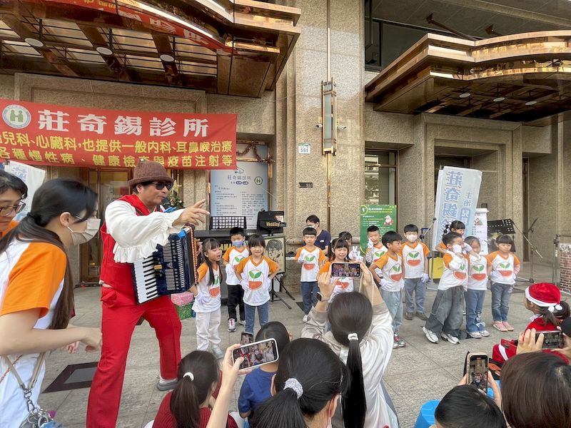 活動由診所院長莊奇錫醫師致詞揭開序幕,感謝社區居民一路以來的支持與信任,並特別邀請台灣民謠手風琴名師陳紀揚先生化身為聖誕老公公擔任主持人,為活動增添歡樂與驚喜。