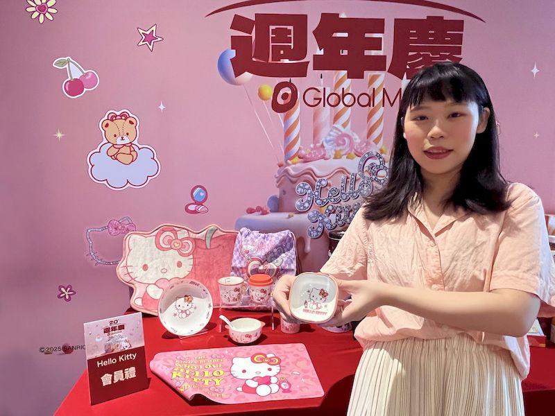 Global Mall 20週年慶攜手全球最具人氣的可愛代表Hello Kitty推出一列限定活動,週年慶會員禮以Hello Kitty生活實用小物為主,包含保溫杯、陶瓷碗盤、方形碟、束口袋等,消費滿額或扣點即可兌換,將粉萌Kitty帶回家。除了精美會員禮,還打造了粉嫩夢幻的Hello Kitty打卡點,可愛模樣吸引民眾拍照打卡,粉色魅力讓人沉浸在軟萌氛圍中,實現好玩、好買、又好拍的購物體驗。