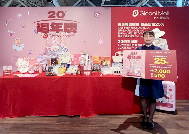 【記者李祖東/高雄報導】迎戰下半年最大檔期,Global Mall新左營車站《20週年慶》首波檔期將於10月9日至10月22日展開,以20週年為主軸力推三大採購攻略,包含指定品牌獨家優惠、會員限定Hello Kitty聯名禮以及消費滿額最高享25%超值回饋,且首次綁定GMpay搭配Global Mall聯名卡消費滿千再送百,回饋更有感。《20週年慶》聯手10大品牌推同慶活動力推休閒潮流、服飾配件、保養品等優惠6折起,以及為因應旅客、通勤族享食高需求,週年慶首五日特別推出飲品買一送一、餐食加價購等多項好康;此外,Global Mall更攜手全球最具人氣的可愛代表Hello Kitty推出一系列限定活動,可愛聯名會員禮及粉嫩夢幻拍照打卡點,全面鎖定親子與粉絲商機,粉紅魅力渲染不僅好玩、好買,還有新櫃助攻買氣,9月起引進Outdoor、31冰淇淋、魷樂園入駐,潮流新話題為Global Mall新左營車站帶來全新購物選擇,多重優惠搭配新櫃進駐,期望為週年慶買氣注入新動能。