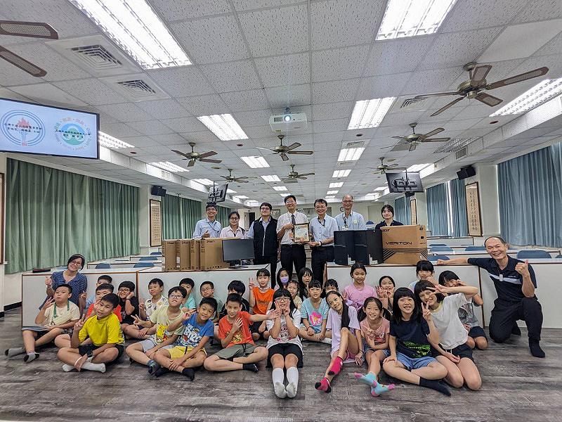 圖說:楠梓國小學童歡喜參加中油公司煉製事業部捐贈再生電腦儀式