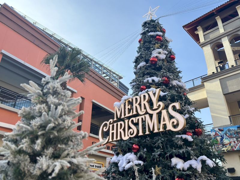 每日下午2點到晚上9點,鐘塔下準時上演的「雪花音樂秀」更是全場焦點,伴隨著音樂節奏與緩緩飄落的雪花,營造出浪漫與溫馨的聖誕氛圍。