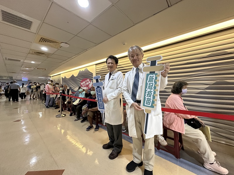 圖說3. 114年公費流感和新冠疫苗今日開打,吸引許多民眾來院施打,高醫王照元院長(左)與林宗憲副院長(右)呼籲民眾施打公費流感和新冠疫苗雙疫苗,守護自己及家人健康。
