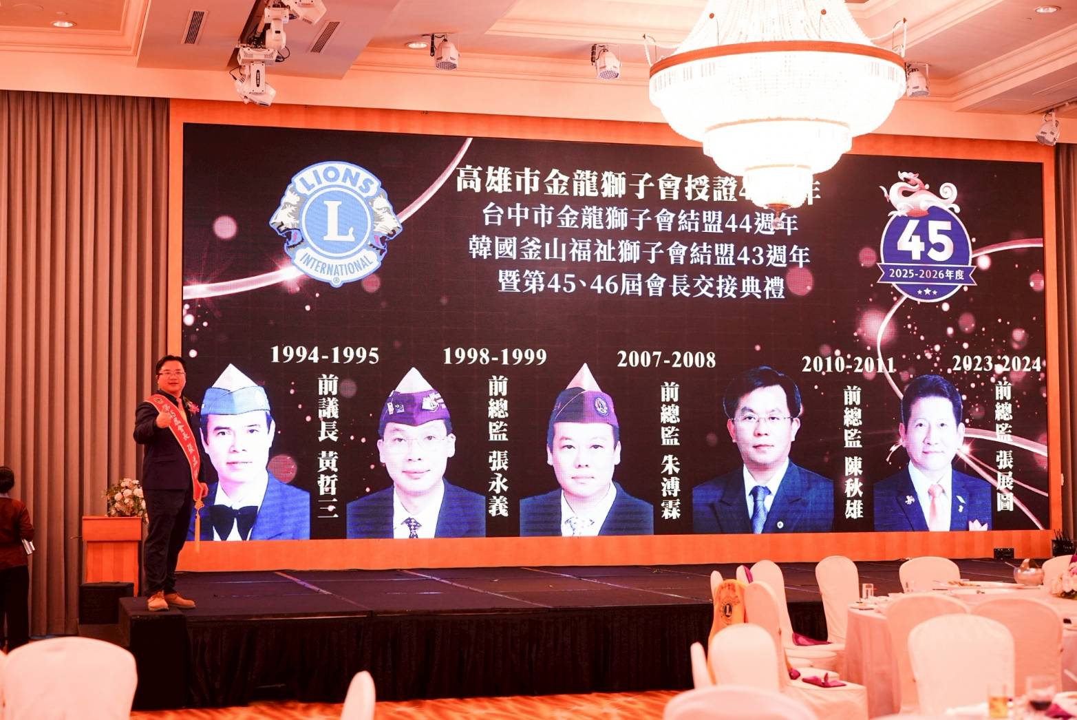 典禮在溫馨而隆重的氛圍中圓滿落幕,象徵金龍獅子會薪火相傳、生生不息。隨著張孟傑會長榮退,第46屆會長將由劉昶佑接任。劉會長為林園「合春園仔」第三代傳人,承載傳承與創新的使命,未來將帶領金龍獅子會持續以服務為核心,邁向更寬廣的公益道路,再創高峰。
