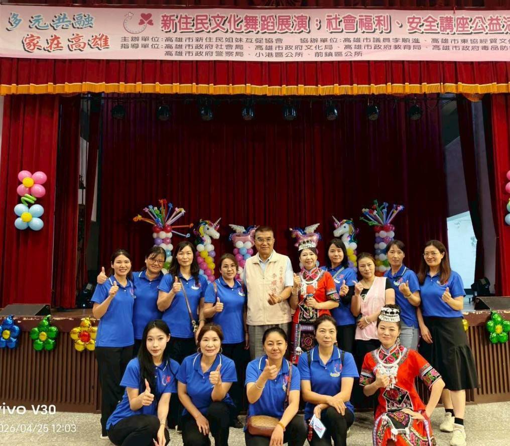 【記者楊尚義/高雄報導】為促進多元文化交流、強化新住民在地支持系統,由**高雄市新住民姐妹互促協會**主辦的「多元共融・家在高雄」新住民文化舞蹈展演暨教育、社會福利、安全公益講座活動,於4月25日在**高雄市立空中大學**溫馨登場。活動結合文化展演與公共議題宣導,展現高雄多元包容的城市精神,吸引眾多新住民家庭與在地民眾熱情參與,現場氣氛熱絡感人。