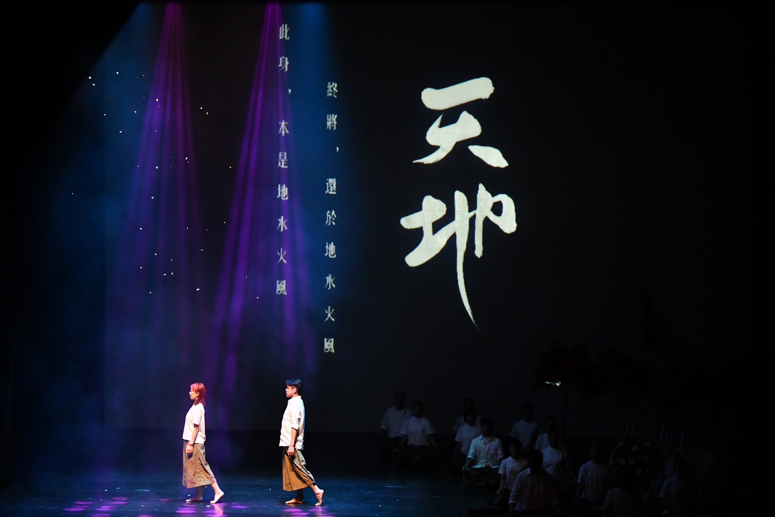 《法語花香》取名自佛教經典《法句經》(Dhammapada),意為「真理的語言」,作品以現代劇場語言重新詮釋佛陀智慧,融合戲劇、音樂、舞蹈、瑜伽肢體與花藝創作,跳脫傳統說法方式,讓佛法透過視覺、聽覺與身心感受自然流動,在層層藝術鋪陳中,引領觀眾體會其深邃而柔軟的精神內涵。