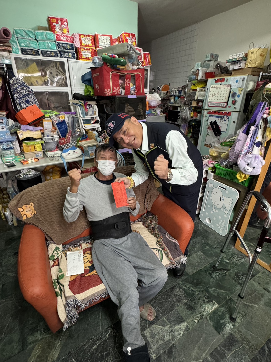 警民愛心慈善會理事長萬春賢隨即發起愛心串聯,於 1 月 6 日(星期二)攜手保源鼎盛關懷弱勢社區發展協會及鼓山區慈愛會會長郭居永及多位善心人士,率隊到府關懷,共近30人響應,成功募集5萬多元善款及白米、泡麵等民生物資。