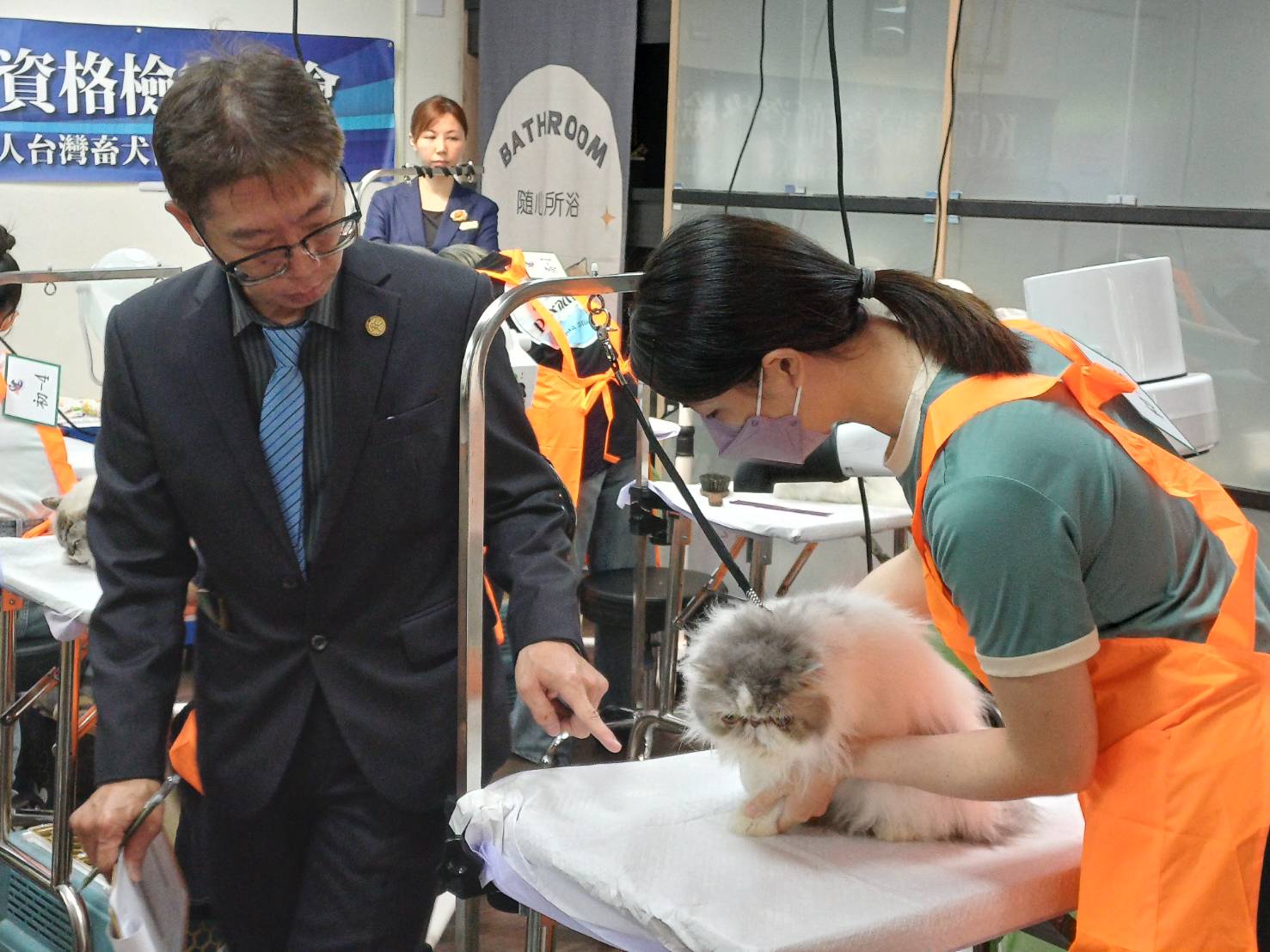 此次檢定內容涵蓋貓皮毛健康、工具衛生學科;術科則包含洗護流程、修剪技巧,以及針對緊張、逃避、輕度攻擊等真實情境的處理能力。KCT 監評並於現場進行情境抽題,確保證照與職場需求零落差。