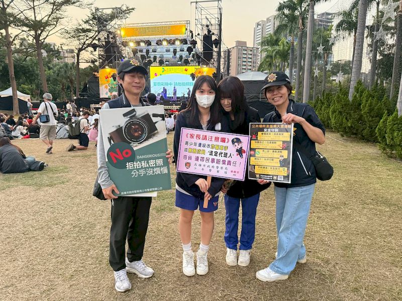 為了讓宣導成效最大化,少年警察隊於這二日編分12組,立即走入人群,或結合高雄市各級學校舉辦校慶、園遊會等大型活動時機,攜帶自製宣導海報,向學生與民眾進行面對面宣導,教導青少年於校外活動、通學及搭乘大眾運輸時,如何察覺異常狀況並正確應變,同時亦派員前往「2025高雄聖誕生活節」等大型活動現場,向活動現場的民眾加強宣導,提醒在人潮聚集處保持警覺、避免圍觀、迅速通報,確保自身與他人安全。