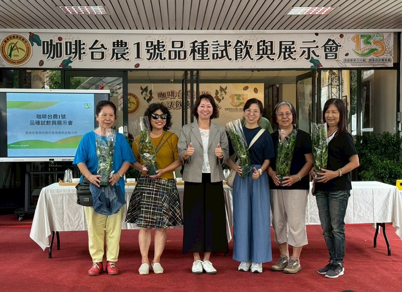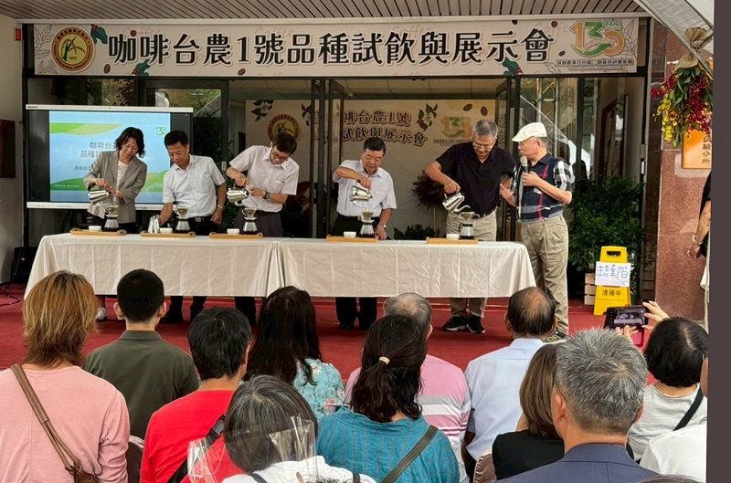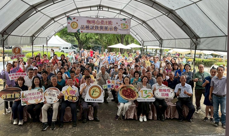 【記者楊賢明/高雄報導】在全球氣候變遷與消費市場不斷變化的背景下,臺灣咖啡產業迎來嶄新的一頁,農業部農業試驗所歷經多年研究與培育,成功育成臺灣首個本土咖啡品種「台農1號」,不僅突破中低海拔種植的瓶頸,更以獨特風味與穩定產量,為國產咖啡開啟全新發展契機。「台農1號」風味獨特,具堅果香氣、溫和果酸、體脂感厚、滋味濃郁餘韻長、口感優秀。其葉片更富含具機能性功效的綠原酸可製造保健咖啡葉茶飲,亦可應用於美容保養如面膜等護膚產品之原料供應,為咖啡農創造咖啡豆以外的加值收入,實現農業資源的全方位加值利用。經國際標準杯測驗證,「台農1號」在低海拔生產的生豆烘焙後,風味可達精品咖啡(SCA 82分以上)等級。農業試驗所研究咖啡已有百年歷史,為推廣研究成果並促進台灣咖啡的多元應用,特於11月11日在嘉義分所舉辦「台農1號咖啡試飲與展示觀摩會」邀集產官學研單位與各地咖啡農實地觀摩並品評咖啡風味,由農試所嘉義代分所長張哲瑋與歷任分所長一起沖泡該咖啡,邀現場民眾在戶外休閒咖啡座上一起分享品嚐,咖啡香帶動現場熱絡氣氛。現場也展示「台農1號」副產品加值製作的美容護膚保養品,綠原酸保健飲品等多元產品,期盼此品種帶動臺灣咖啡品牌化,提升國產咖啡競爭力,拓展更具多元產值的本土咖啡產業未來。