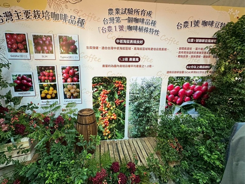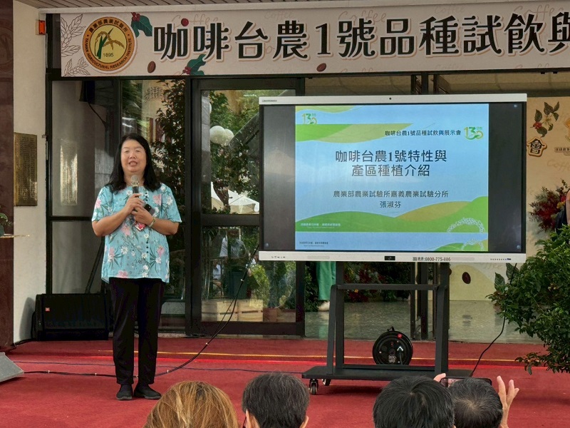 農試所嘉義代分所長張哲瑋表示,依據農業部農業統計年報顯示,113年全臺咖啡種植面積已達1,216公頃,其中高海拔產區面積約占30%,中及低海拔產區各佔約35%,為產業平穩發展,兼顧水土保持及因應氣候變遷的挑戰,具有適應臺灣風土氣候的自有品種至關重要!為改進長期以來國外引進咖啡作物在本地適應力不佳,及面臨氣候變遷挑戰下咖啡產量與品質不穩定的問題,該所育成咖啡品種「台農1號」,該品種具有植株生長強健,適合臺灣中低海拔區域栽培,產量約為國內栽培品種平均產量的1.2倍,於高海拔區域則有更佳品質表現。
