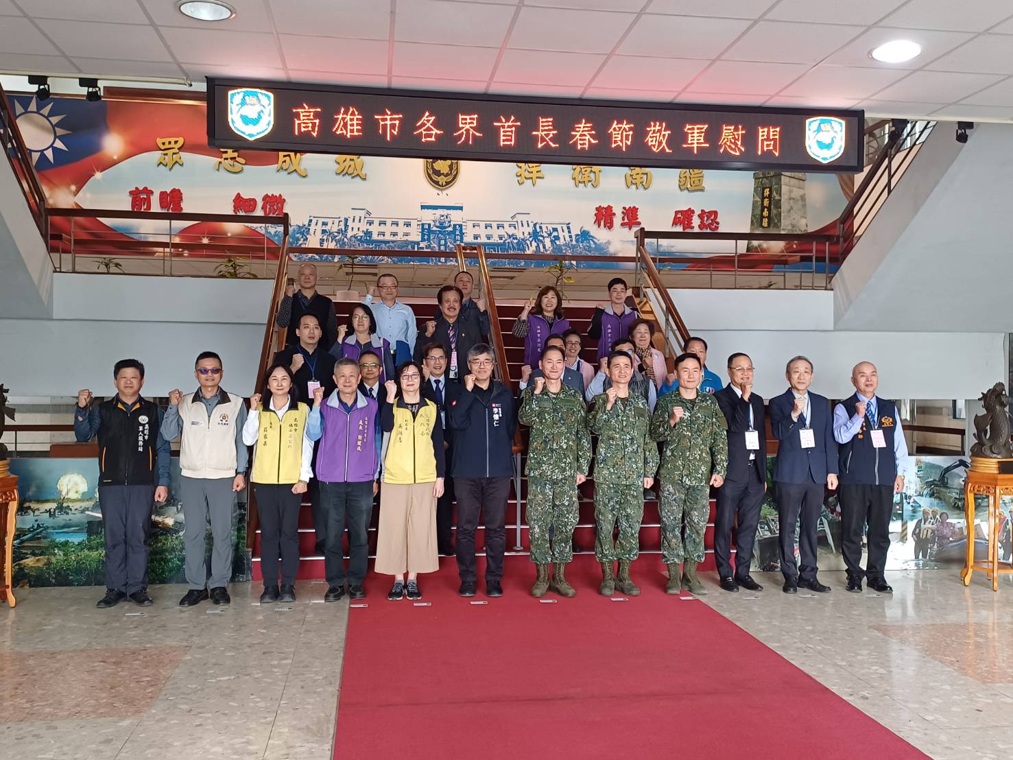 高雄市各界首長參與今年春節敬軍活動相當熱烈,除了市府所屬單位的民政局、兵役處、旗山區公所、左營菜公里外,包括進出口公會、新進出口公會、商業會、工業會、銀行公會、婦女會、後憲荷松協會、自然生態保育協會等首長,以及雄輝工程有限公司、創世紀再生電池公司等民間企業,由高雄市軍人服務站站長吳俊一陪同慰訪。