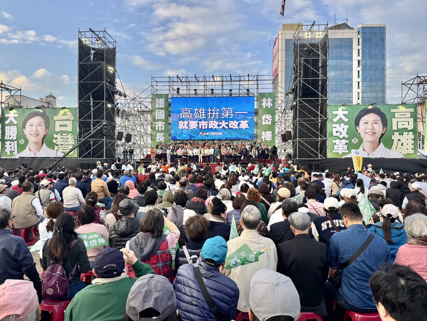 【記者楊賢明/高雄報導】2025年12月27日,林岱樺於鳳山舉辦的選舉造勢活動吸引了超過10萬名民眾參加,創下民進黨市長初選活動的參與人數新高,現場氛圍熱烈,支持者高喊加油、當選,展現出強大的選舉氣勢。林岱樺在演講中深情地回顧了自己25年的政治生涯,並表達了對故鄉鳳山的深厚情感,無論遇到多大的困難皆會身受鳳山父老兄姊的支援和鼓勵。