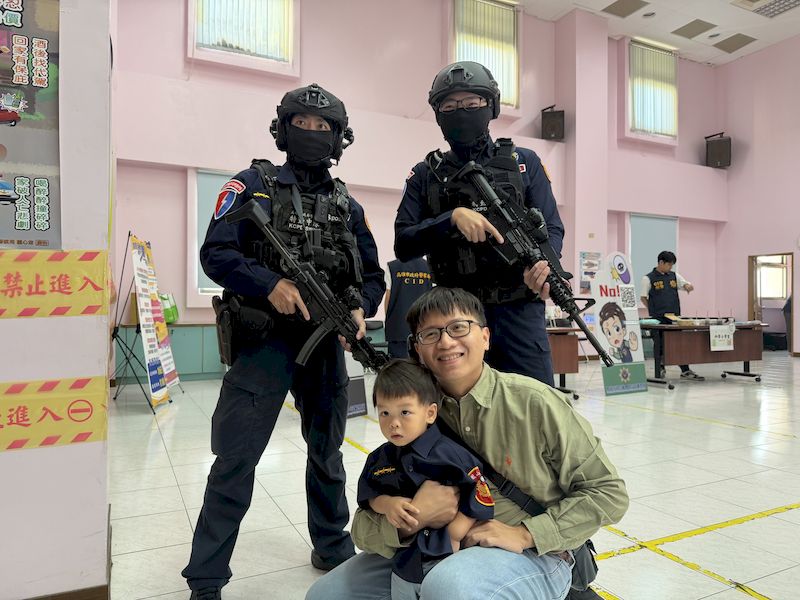 最受孩子們喜愛的「水彈槍射擊體驗」則在警方完整安全管控下進行,警方示範瞄準與射擊技巧,讓孩子在專注與遊戲中培養紀律與安全觀念。家長表示,活動中將品德及法紀教育巧妙融入遊戲,不僅拉近孩子與警察的距離,也讓反毒、防詐、交通安全等重要知識自然在孩子心中萌芽。