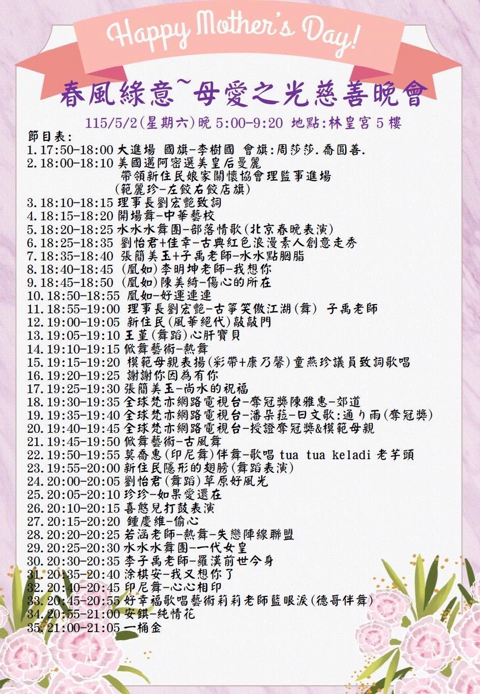 時間:115年5月2日(星期六)17:00至21:00