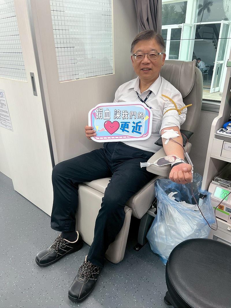 圖說:中油公司煉製事業部陳正喜副執行長挽起衣袖捐熱血