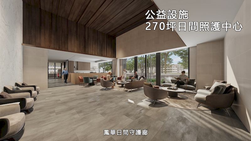 公共與公益設施部分,包括室內270坪日間照顧中心及150坪環保局辦公室,提供長輩生活照顧、餐飲、交通接送、健康促進及文康活動,豐富長者社交生活。此外,捐贈一座Ubike2.0車站,落實大眾運輸導向之捷運城市政策。