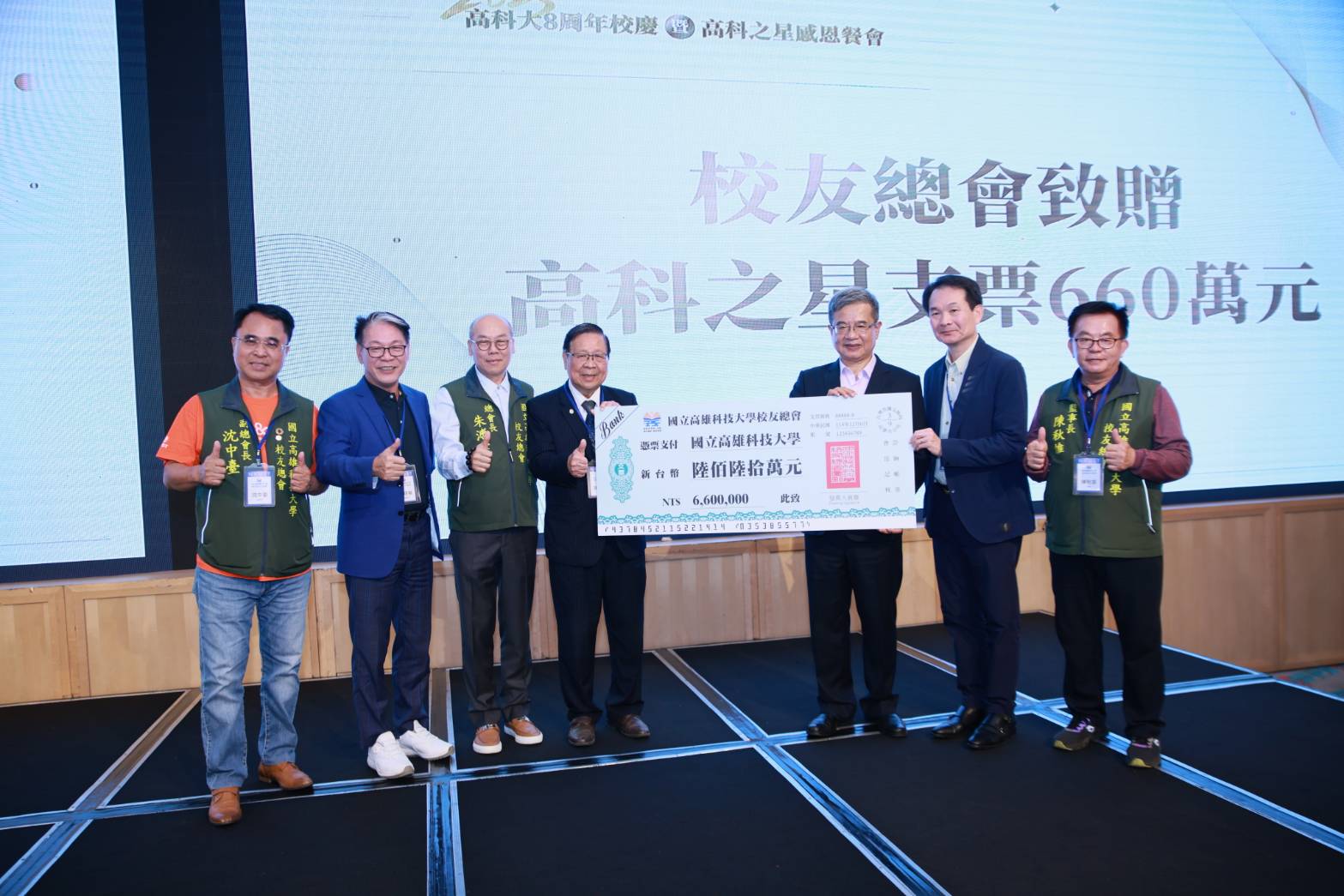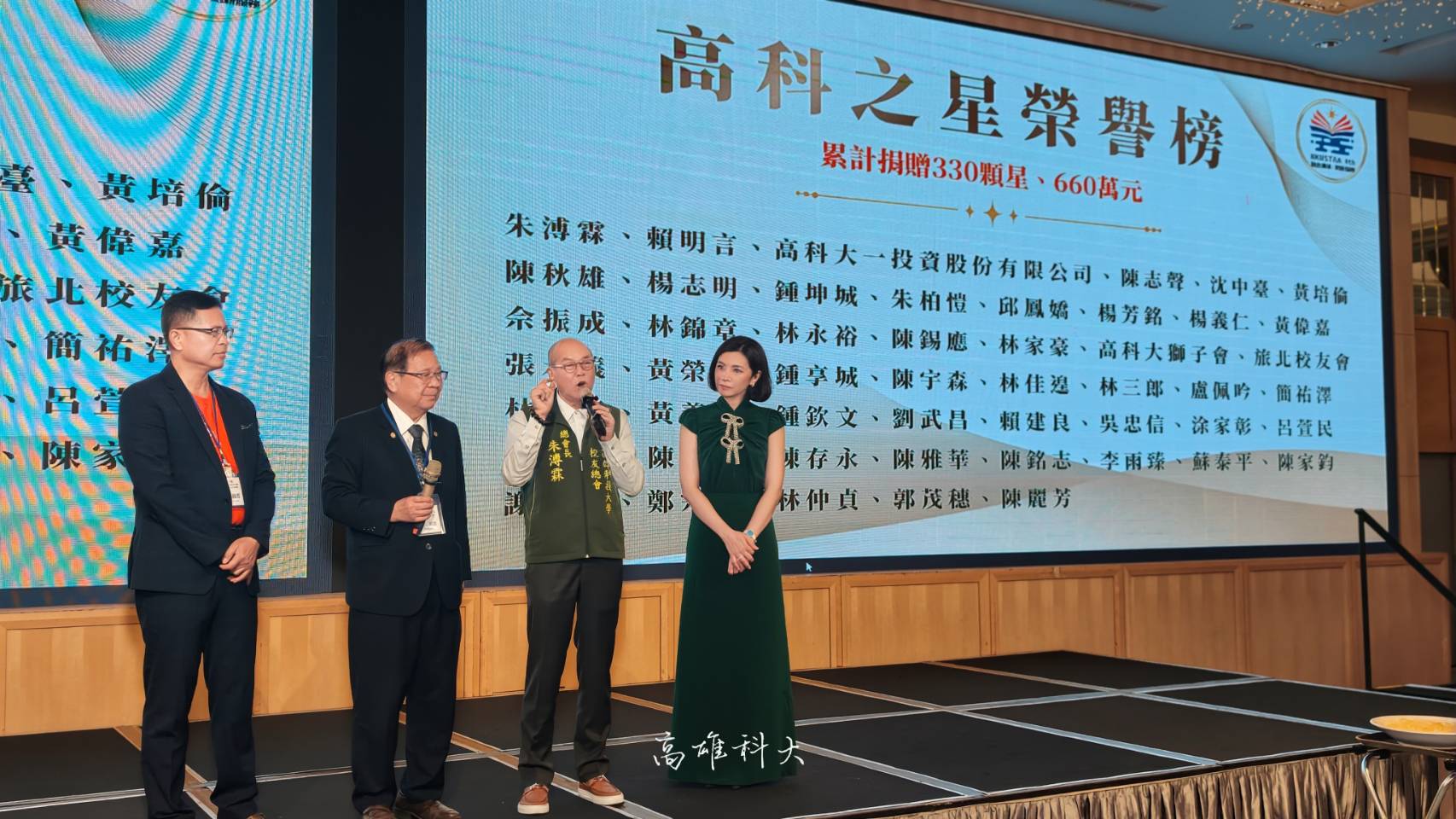12 月 6 日晚間的「高科之星感恩餐會」為校慶壓軸,氣氛溫馨感人。校友總會與高科之星委員會攜手推動「高科之星勵學計畫」,以「一顆星 2 萬元,一顆不嫌少、百顆最美好」為倡議,希望協助經濟弱勢學生專心求學。海內外校友熱情響應,最終募得 660 萬元,成為學弟妹前行的重要助力。