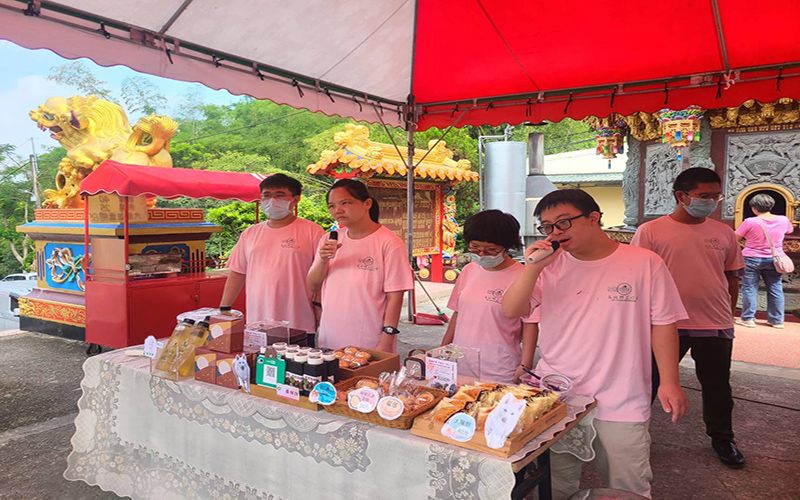 烏托邦工作坊由孔宜靜執行長帶領學員一同參與,展售手工點心與創意小物,這些作品全由學員親手製作,每一份成品都蘊含努力與喜悅,活動中,學員們主動與民眾互動、介紹作品,從銷售、服務到表達,展現出自信與成長。許多參與的信眾感動地表示:他們的笑容比陽光還溫暖,讓人看到真正的幸福與力量。