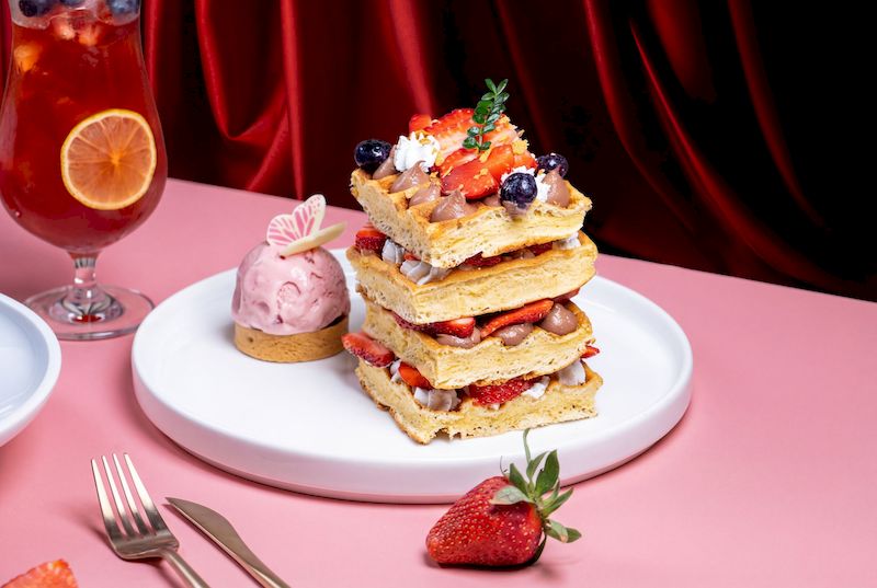 位於 11 樓的京心咖啡廳以「莓好派對」為主題,將草莓的清新酸香融入沙拉、甜點與飲品之中。其中「清新草莓布拉塔花園沙拉」以多汁草莓搭配柔滑布拉塔起司,佐以清爽油醋,乳香與果酸在口中交織,輕盈卻富有層次;季節限定的「莓好鬆餅」外酥內軟,鋪上新鮮草莓與細緻奶霜,溫熱鬆餅與冷冽果香形成迷人對比,甜而不膩。飲品部分,「草莓緋紅冰茶」以茶香襯托草莓果韻,清爽解渴;「草莓抹茶奶蓋」則結合微苦抹茶與濃郁奶蓋,尾韻帶出草莓的柔和甜味,為草莓季增添成熟大人的風味表現。甜點供應時間為11:30至17:30、飲品供應時間為11:00至23:00,2月28日前每日限量販售,預約專線:(07)559-6916。
