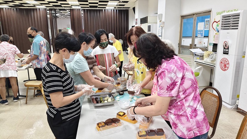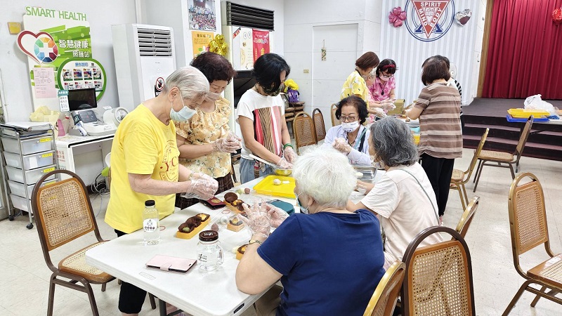 活動中,長輩與志工們在學習中互助合作,現場氣氛熱絡又溫馨。透過這場手作體驗,甜點不僅可口,更充滿成就感與溫馨的回憶,讓長輩與志工提前感受到中秋佳節的團圓與溫暖。