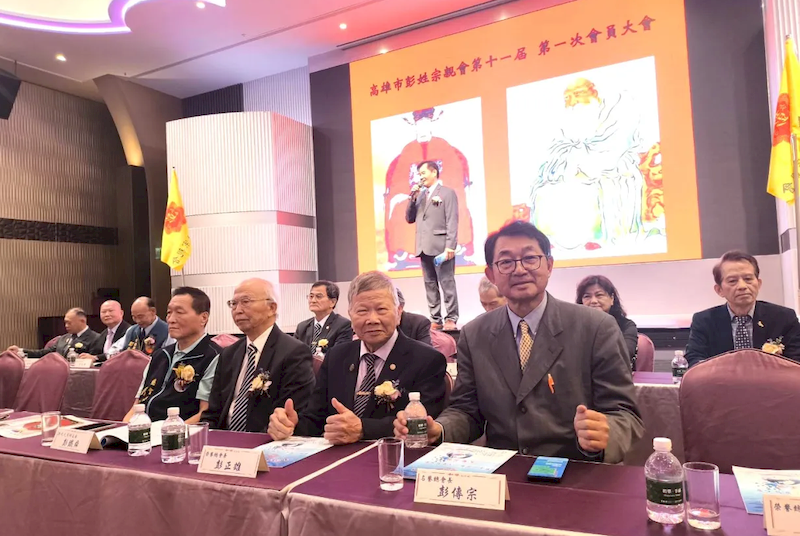 【記者張永漢/高雄報導】高雄市彭姓宗親會今(22)日於高雄市和樂餐廳舉辦第十一屆理監事就職典禮,宗親會依例在會場右側懸掛彭祖繪像,以表慎終追遠之意。全台彭姓後代在各縣市均設有分會,此次典禮,除總會到場輔導,各地宗親也熱情響應,新竹分會更以遊覽車南下,部分宗親前一晚已入住國軍英雄館,展現宗族間一貫的團結情誼。