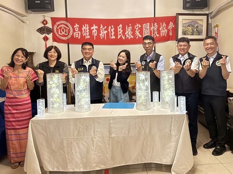 接著溫馨見面香港新住民小芳。小芳因來臺旅遊在街頭一日三次與國人先生浪漫邂逅,宛如「轉角遇到愛」的偶像劇情節真實上演,命中註定兩人「一眼定情」,婚後移居臺灣成為臺灣新住民。小芳在香港職涯生活期間,曾服務於多家航空公司擔任旅客服務督導與地勤運務督導,並多次獲得香港機場管理局頒發香港國際機場優質顧客服務個人卓越獎,結婚依親來臺後,熱愛學習積極就讀文藻外語大學英文系,為反饋自身所學,協助更多港澳新住民瞭解臺灣文化多元性及包容性,於113年申請到移民署高雄市第一服務站擔任實習生半年,期待透過自身所學知識,為新住民點一盞燈,小芳日前任職跨國企業經理人,平時研究星座命理亦頗有小小心得,特別為今日的訪視活動訂製了高度48公分,在命理學代表「迎福」吉數的燈座,邀請林署長一行體驗手作『開運星星燈』,共同為新住民點燈開運。